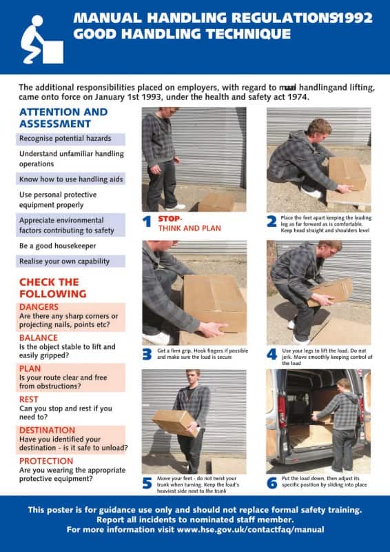 Manual Handling Guidance Poster W420x595 Hs102 Facility